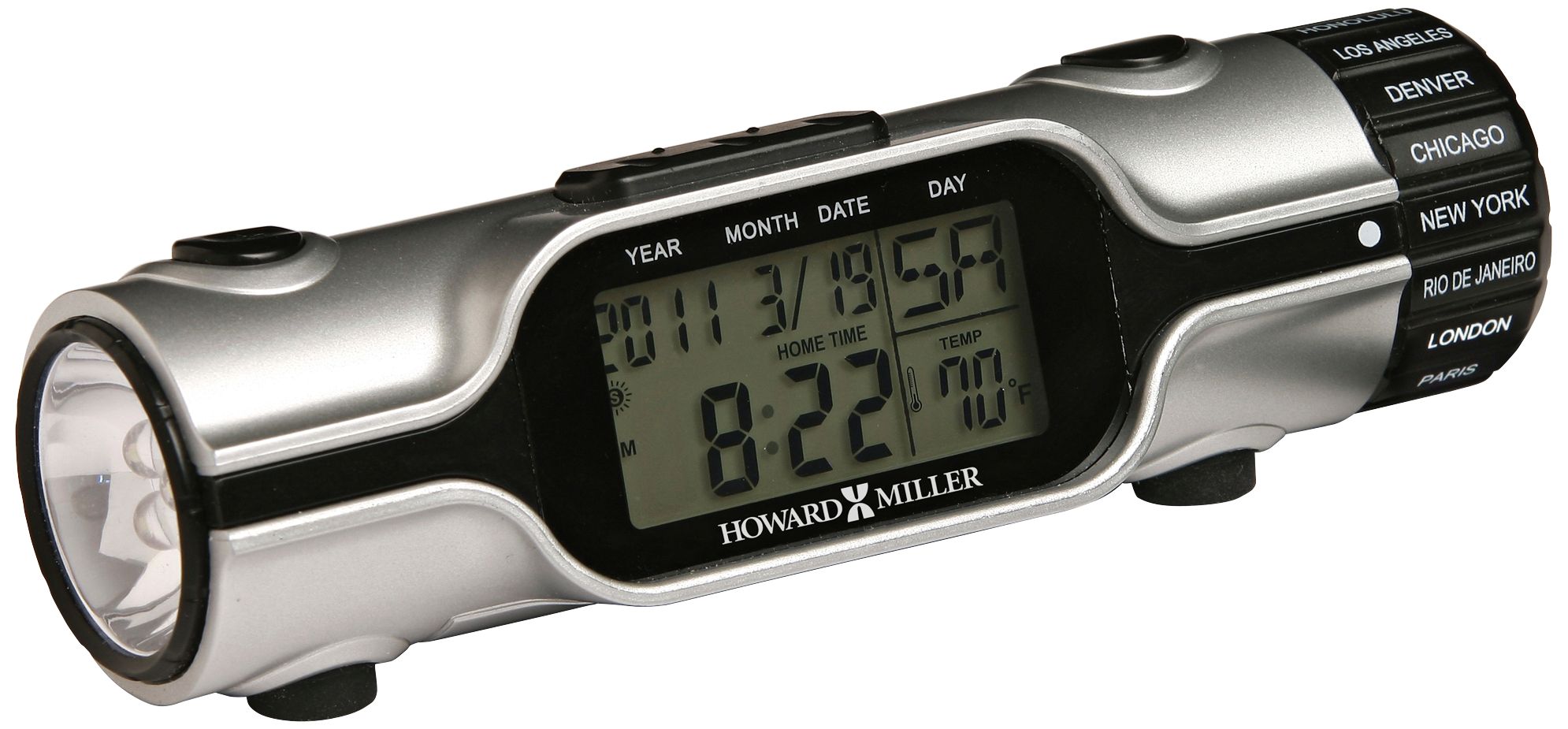 World Time Travel Alarm Clock Flashlight By Howard Miller